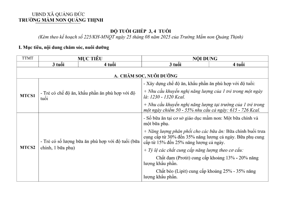 KH LỚP GHÉP 3, 4 TUỔI 2025- 2026